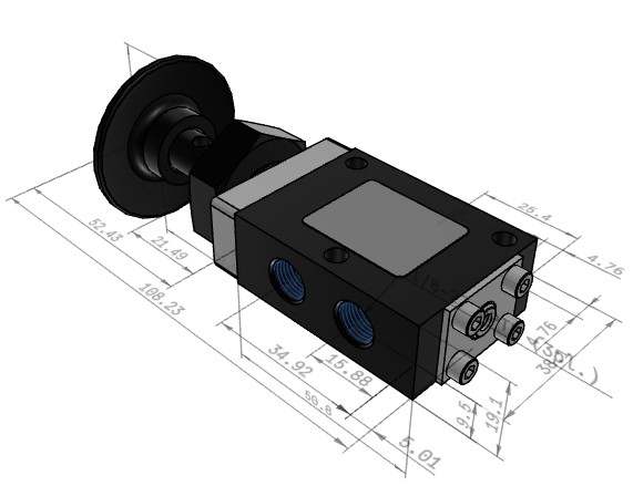 50 Series, 3 way, 1/8″ Side Ports with Panel Mounting, Palm Button/ Spring