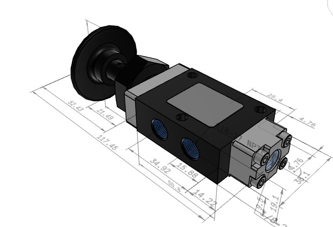 50 Series, 3 way, 1/8″ Side Ports with Panel Mounting, Palm w/o Button/ Pilot