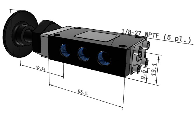 50 Series, 4 way, 1/8″ Side Ports with Panel Mounting , Palm w/o Button/ Manual